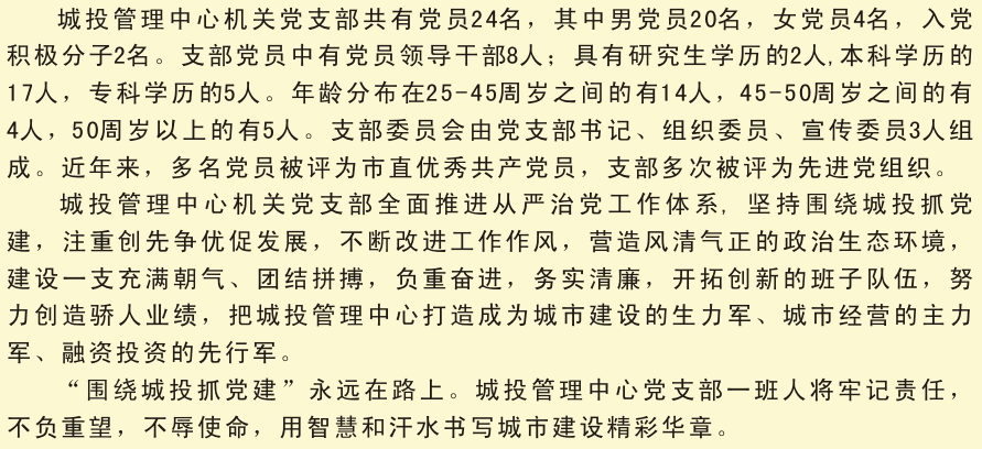 中共黃岡市城市建設(shè)投資管理中心 機(jī)關(guān)黨支部基本情況簡介