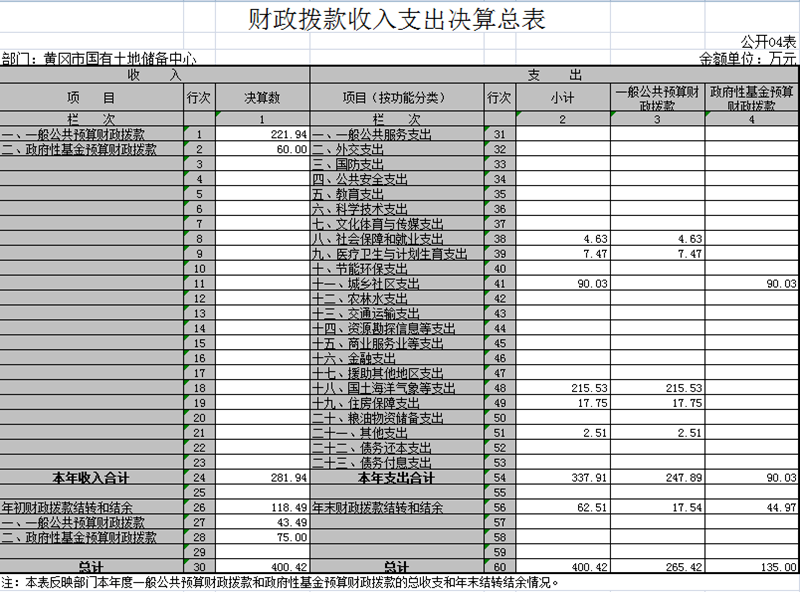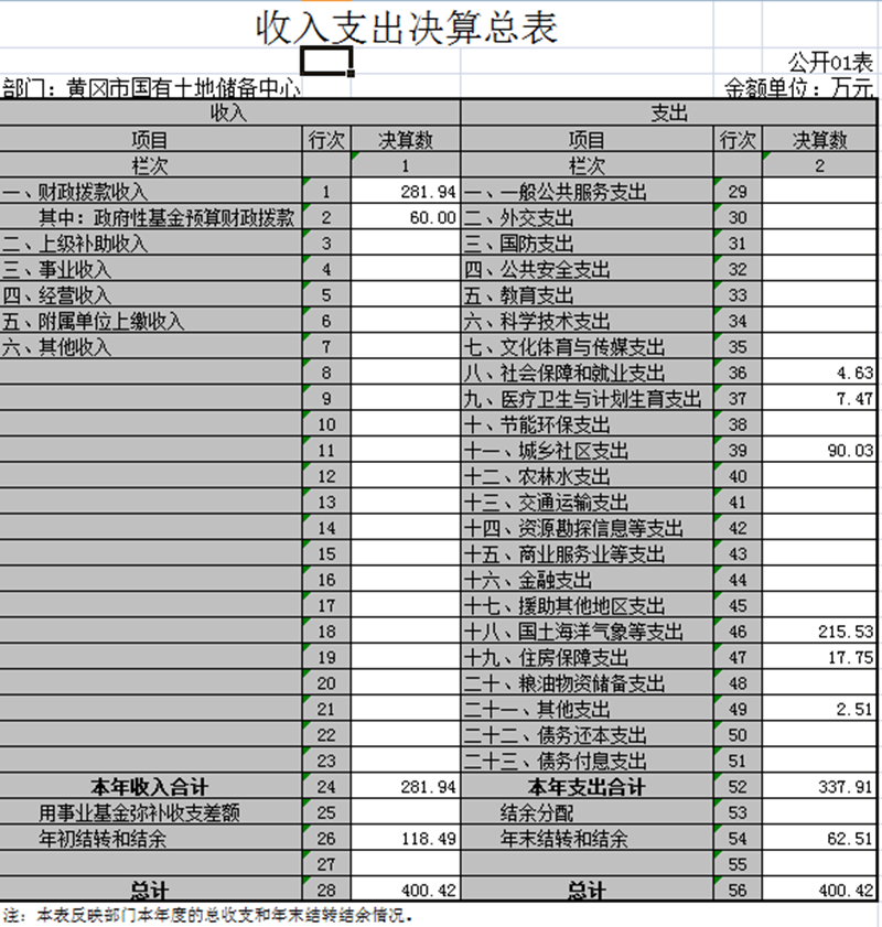 中心下未設(shè)二級單位,本決算范圍僅包括黃岡市國有土地儲備中心。