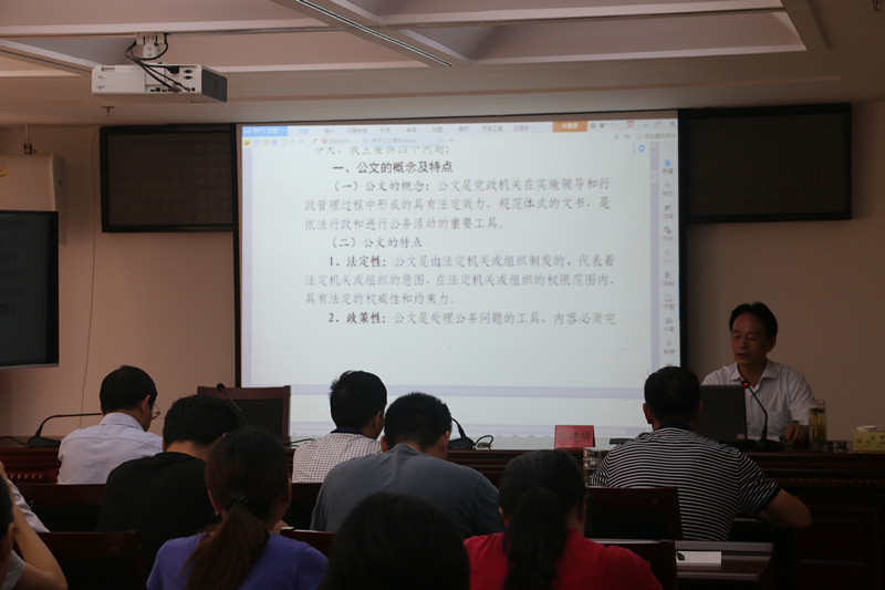 8月4日,公司邀請原市人大預算委主任程建明同志來公司就公文寫作為全體干部職工進行了專題輔導。