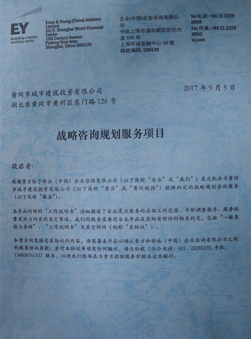 面對(duì)新形勢(shì),為繼續(xù)服務(wù)好我市城市建設(shè)和經(jīng)濟(jì)發(fā)展,積極響應(yīng)市委及政府要求,我公司抓住轉(zhuǎn)型和集團(tuán)組建的契機(jī),嚴(yán)格審批流程,聘請(qǐng)實(shí)力雄厚的安永企業(yè)咨詢公司來黃岡對(duì)城投公司和城發(fā)集團(tuán)整體戰(zhàn)略、管控體系、資產(chǎn)重組、財(cái)務(wù)規(guī)劃等進(jìn)行頂層制度戰(zhàn)略設(shè)計(jì),并為我市投融資機(jī)制改革提供建議。