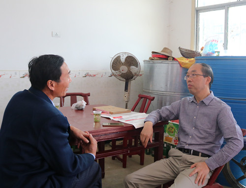 老鸛沖村是雷店鎮(zhèn)第一大村,各村組地域分布廣,大家翻山越嶺、爬坡過(guò)坎前往各自負(fù)責(zé)的貧困戶家中訪貧問(wèn)苦。該村15組杜典堂是李春生同志包保貧困戶之一,李典堂年僅18歲,身患羊癲瘋,有精神障礙,無(wú)勞作能力,其父母身體欠佳,李春生同志當(dāng)即送上慰問(wèn)金并與其拉家常、交心談心,進(jìn)一步掌握其生產(chǎn)、生活、健康等情況。李春生同志要求入戶干部協(xié)調(diào)村委為其家盡快安排合適的公益性崗位,勉勵(lì)其樹立信心,戰(zhàn)勝困難。