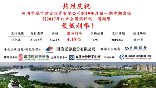 我公司作為本期中期票據(jù)的發(fā)行人,在主承銷商、聯(lián)席主承銷商及相關(guān)評(píng)級(jí)、法務(wù)機(jī)構(gòu)、會(huì)計(jì)師事務(wù)所的大力支持下,科學(xué)謀劃發(fā)行各項(xiàng)工作,精心組織募集說(shuō)明書、主體評(píng)級(jí)、債項(xiàng)評(píng)級(jí)及審計(jì)報(bào)告、法律意見(jiàn)書等資料,積極加強(qiáng)與投資人溝通,深入宣傳黃岡城投業(yè)績(jī),充分展示黃岡城投形象,得到了廣大投資人的高度認(rèn)可,確保了本期發(fā)行工作圓滿順利。本期中票成功發(fā)行,優(yōu)化了公司債務(wù)結(jié)構(gòu),為公司今后持續(xù)健康發(fā)展、助推黃岡市區(qū)經(jīng)濟(jì)高質(zhì)量發(fā)展提供了有力支撐。
