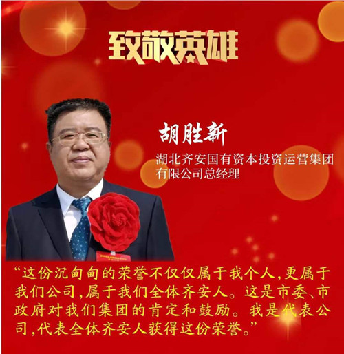 10月12日上午,黃岡市抗擊新冠肺炎疫情表彰大會在市職工活動中心隆重舉行。集團(tuán)公司黨委副書記、總經(jīng)理胡勝新同志榮獲全市抗擊新冠肺炎疫情先進(jìn)個(gè)人。會后,胡勝新同志表示:“這份沉甸甸的榮譽(yù)不僅僅屬于我個(gè)人,更屬于我們公司,屬于我們?nèi)w齊安人,這是市委、市政府對我們集團(tuán)的肯定和鼓勵。我是代表公司,代表全體齊安人獲得這份榮譽(yù)。”