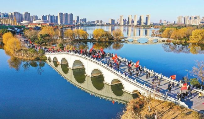 2020年12月31日上午,第九屆遺愛湖迎春健步行活動啟動,來自市直、區(qū)直各單位的干部職工近千人,環(huán)遺愛湖開展迎春健步行,喜迎新年。(梅卓慧 喻越)